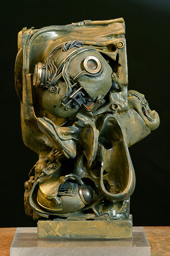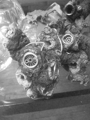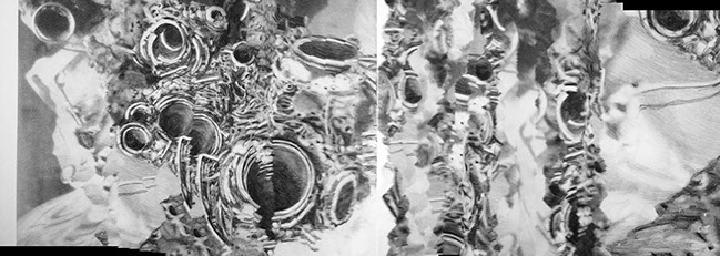 Artistic production promotes deviation from this dilemma and divest into creative enterprise instead. Aleatory art use chance to promote creativity and rejects compliance to pre-determent. Automatism for drawing, Decalcomania for graphics, Collage and Frontage for paintings do exactly that. These techniques/method relay on chance and accident in order to promote creativity. Intuitive discovery ignites creative process of visualization but at this stage mental representation is typically depleted of content. It is during next phase of conceptual blending, different frame of references are mixed, distilled, cultured to matured together and then cultivate it into knowledge. This process improves and advances intellectual content of our mental construction. The process will be complete when oscillation among two hemispheres of our cerebrum converges and achieve dynamic interaction between intelligence and creativity making whole from the parts.